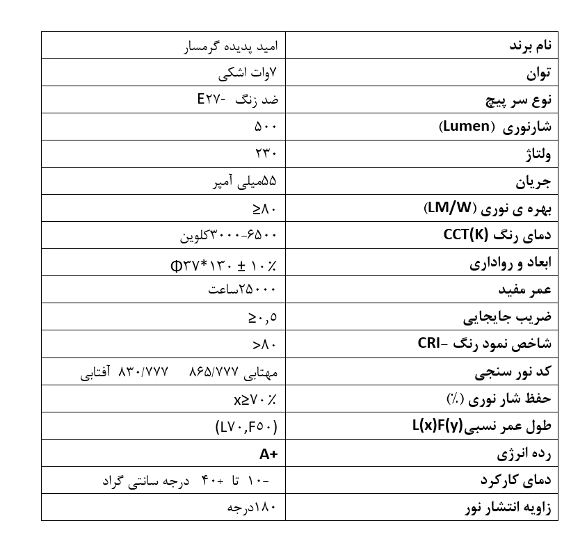 طول عمر مفید این لامپ 25000هزار ساعت ذکرشده یعنی با استفاده صحیح اگر بهطور متوسط روزی ۶ ساعت روشن باشد 11سال برای شما کار خواهد کرد.
